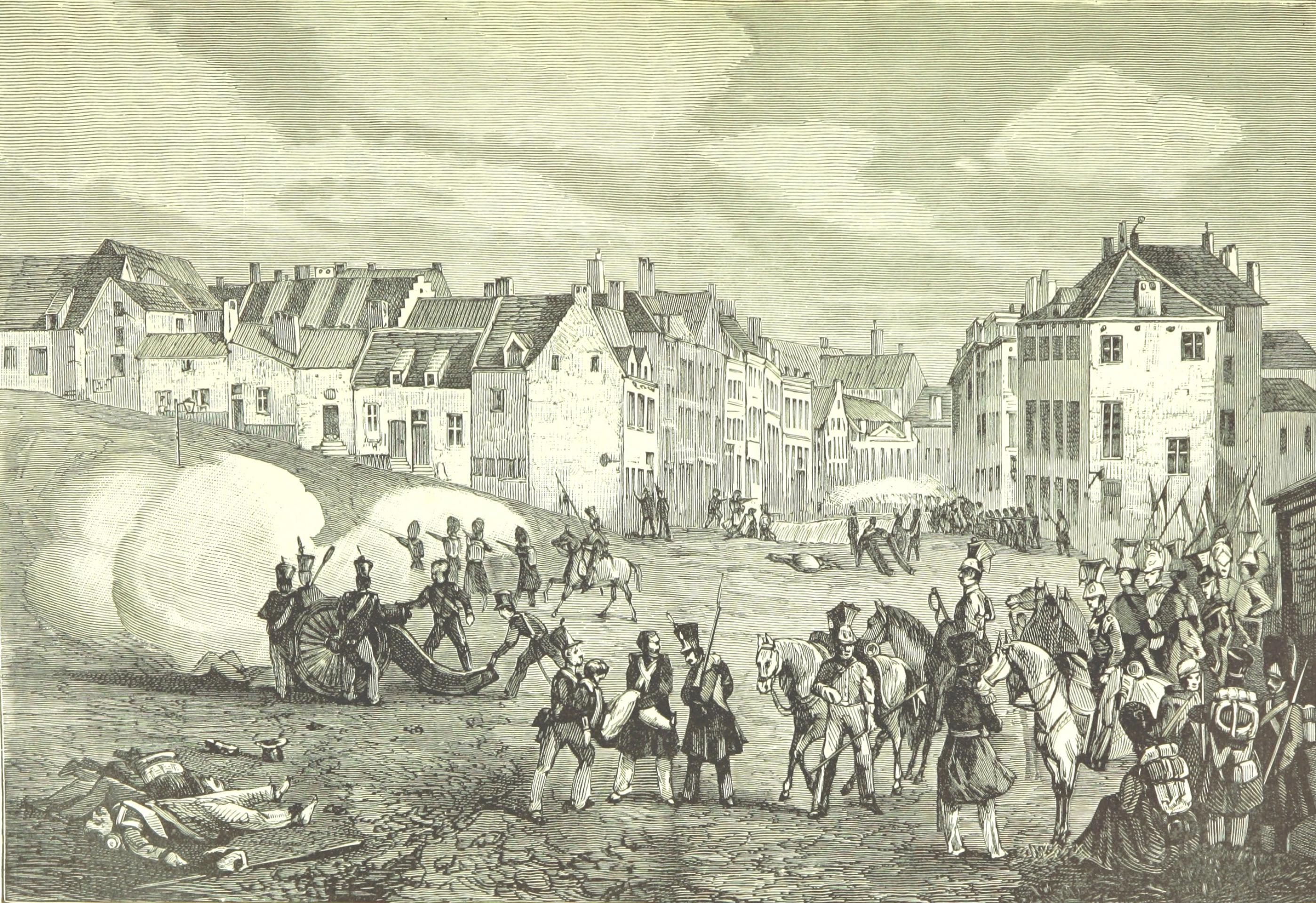 Nederlandse troepen trekken Brussel binnen door de Poort van Namen op donderdag 23 september 1830