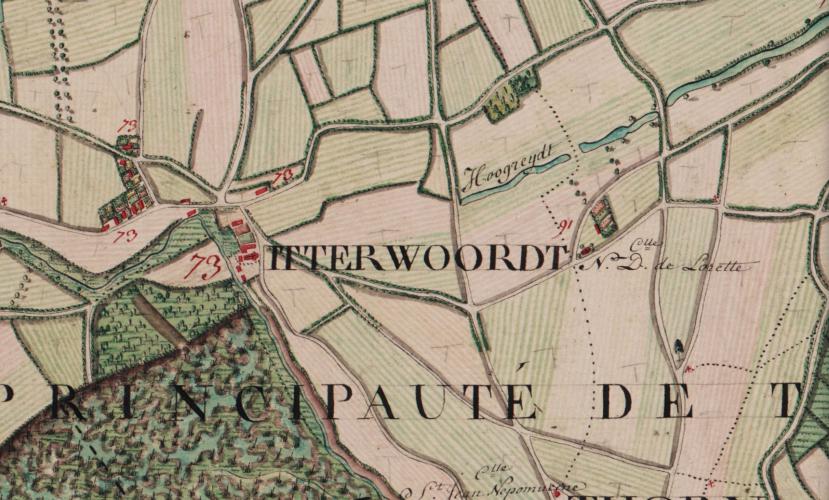 Kaart afkomstig van MapireImpressum 1771-1778Cartograaf Joseph-Jean-François graaf de Ferraris (1726-1814)