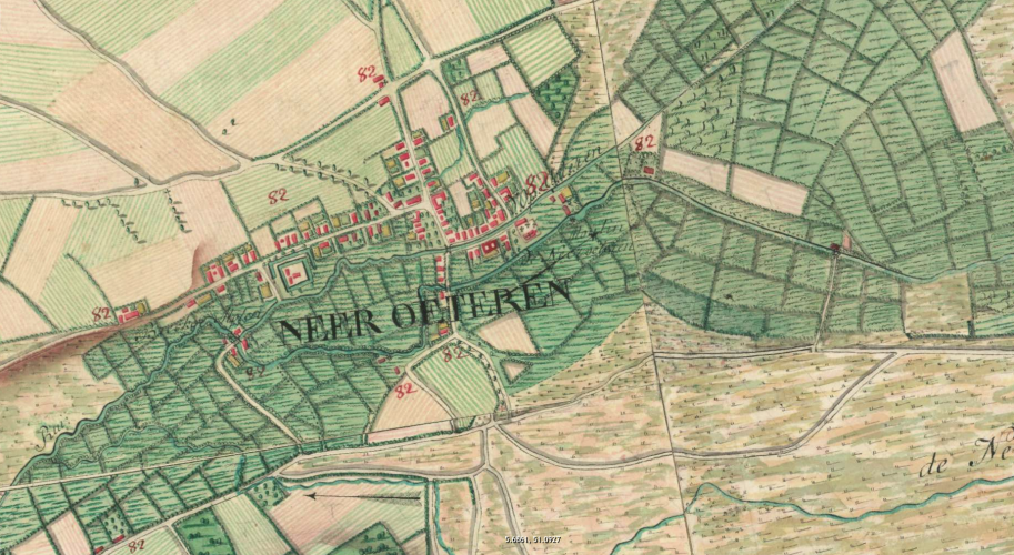 Kaart afkomstig van MapireImpressum 1771-1778Cartograaf Joseph-Jean-François graaf de Ferraris (1726-1814)