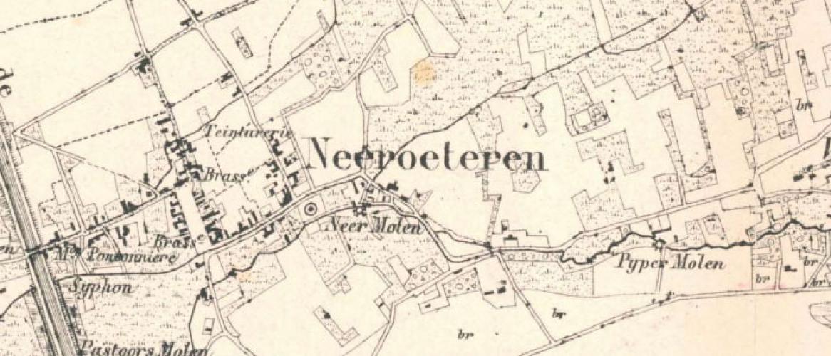 In de geschiedenisboeken is er in het jaar 952 voor het eerst sprake van Neeroeteren/Nerotere, onder de naam "UOTRA". Evenals Opoeteren dankt Neeroeteren haar naam aan één van de beken die door beide deelgemeenten stroomt, namelijk "De Oeter". De naam "Uteren" dateert van het jaar 1245, de oudste vermelding van "Neeroeteren" van na 1630.
