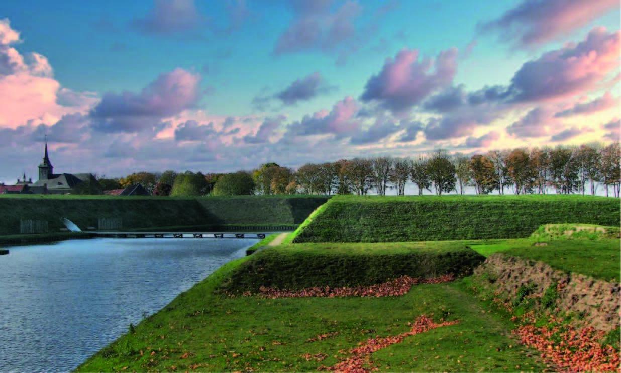 Verder zijner twee cortenstalen poorten te zien, nl de Maas- en Veldpoort en een drietal muurschilderingen over het verleden van Stevensweert.